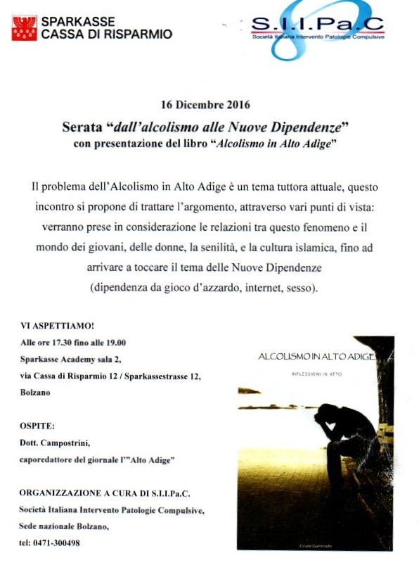 con presentazione del libro “Alcolismo in Alto Adige” del dottor Cesare Guerreschi