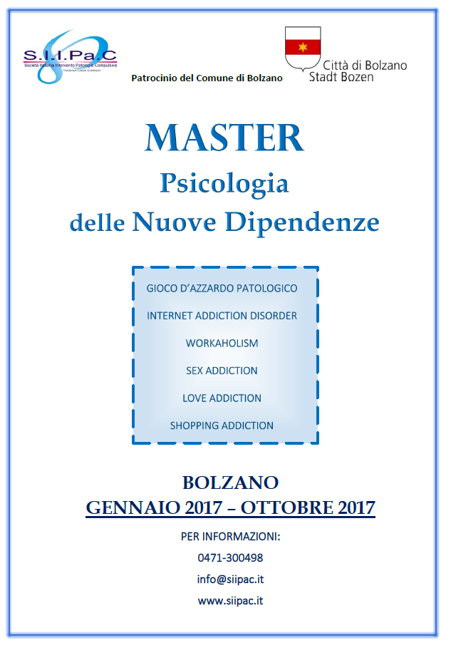 Vi informiamo che il Master in “Psicologia delle Nuove Dipendenze” ha ricevuto il Patrocinio del Comune di Bolzano